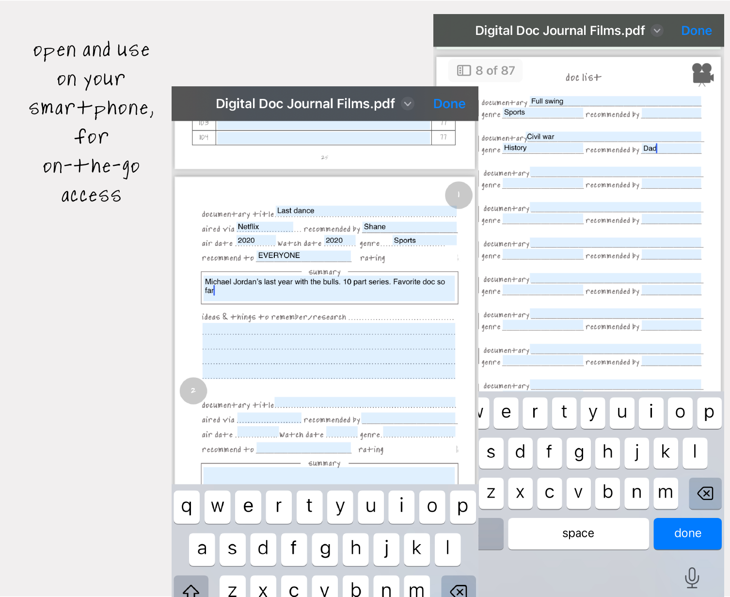 A digital journal made for documentary viewers! Created by and for doc enthusiasts who are tired of losing their thoughts and learnings. This journal will help you organize your ideas and live a more creative life.