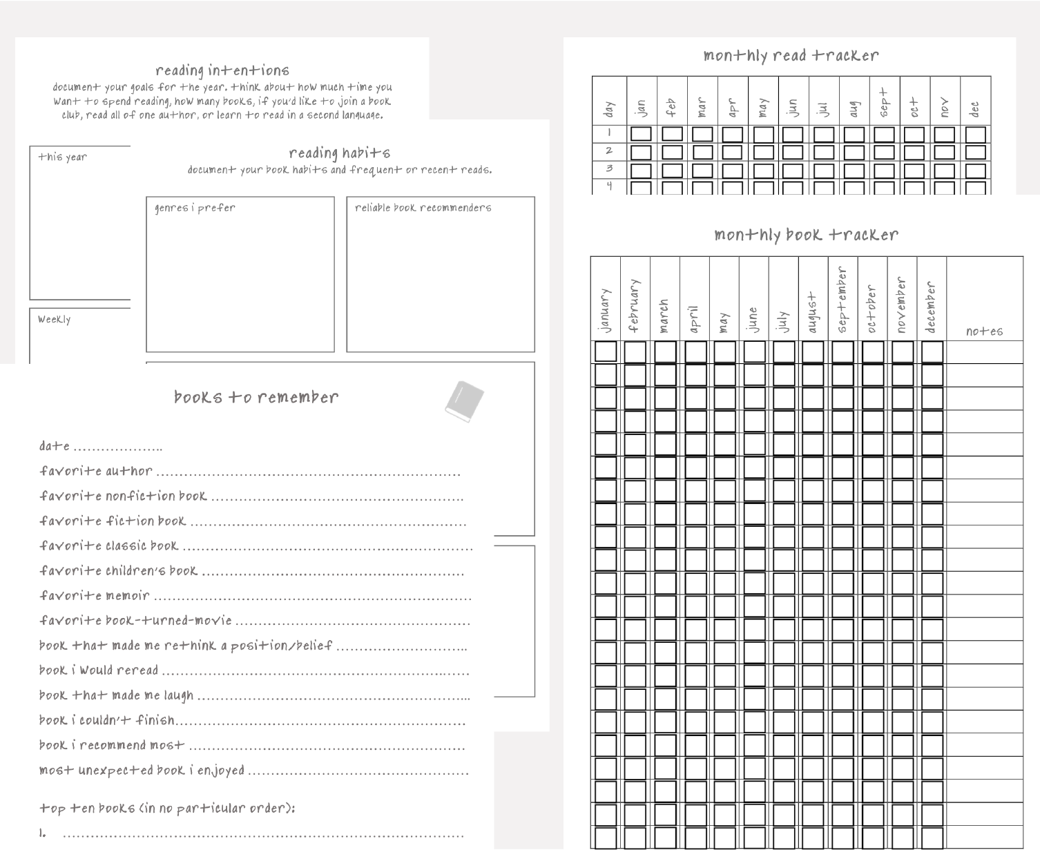 A digital reading journal and book tracker built for non-fiction readers. It allows you to easily organize ideas, notes, quotes & thoughts (and doesn't specifically list character development or plot details). Feel organized, creative and more informed with this easy format.